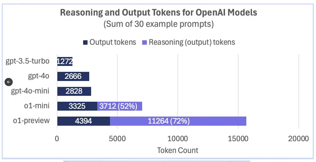 That is not all there is to it though. OpenAI also charges for reasoning tokens and charges them at the higher price it charges for output tokens. Reasoning tokens are generated by o1 itself as part of its reasoning process. How many reasoning tokens are generated? That is a bit opaque and is higly dependent on the task. Some tests by Artificial Analysis are shown below.
