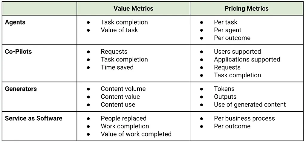 Four packaging models for 2025 and how to price them: generators, agents, co-pilots and service as software
