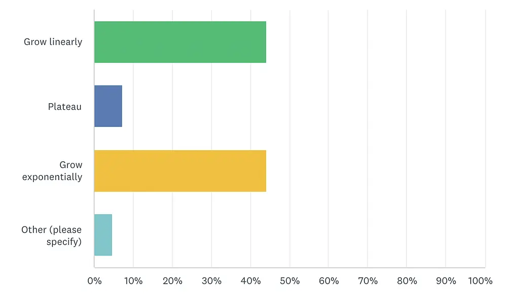 The capabilities of generative AI applications are generally expected to grow, but opinion was evenly divided on whether that growth will be linear or exponential.