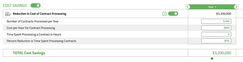 The following three value drivers are all from the same value model. The value model is for a generic contract management system.