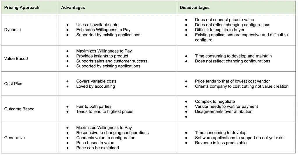 Pricing approaches for generative AI applications (where the alternatives are considered)