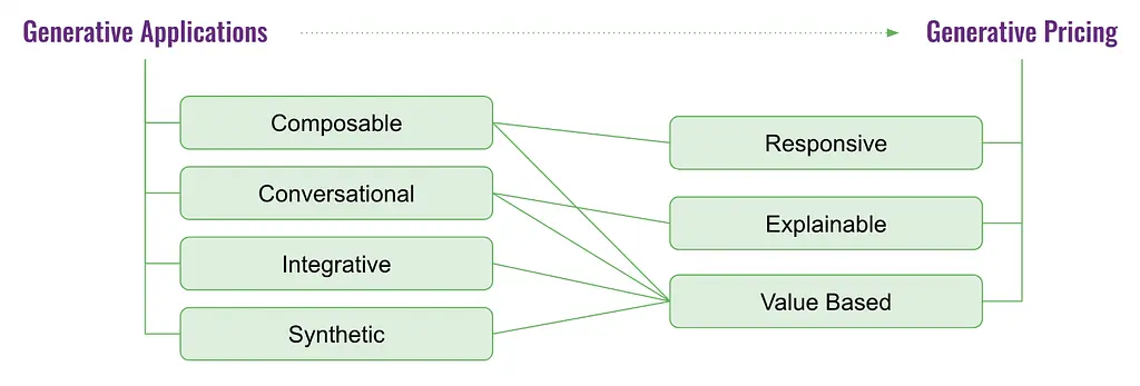 Generative Pricing is an emergent approach to pricing that fits the properties of second generation generative AI applications. It is a blend of dynamic pricing and value based pricing for applications that are composable and can be configured in real time to meet a customer’s changing needs.