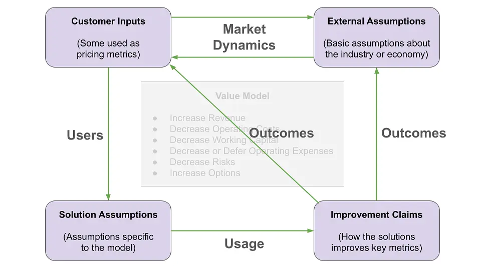 Outcomes change the customer and change the external reality. If the solution is not going to change the customer, hopefully for the better, why bother with it? The outcomes for one company will also change the competition, and if the companies involved are large enough this can even change the overall economy. At the highest level, pricing is about shaping market dynamics in one’s favour, tilting the playing board so to speak. A value model, with its various inputs, is one of the tools needed to craft an effective strategy.