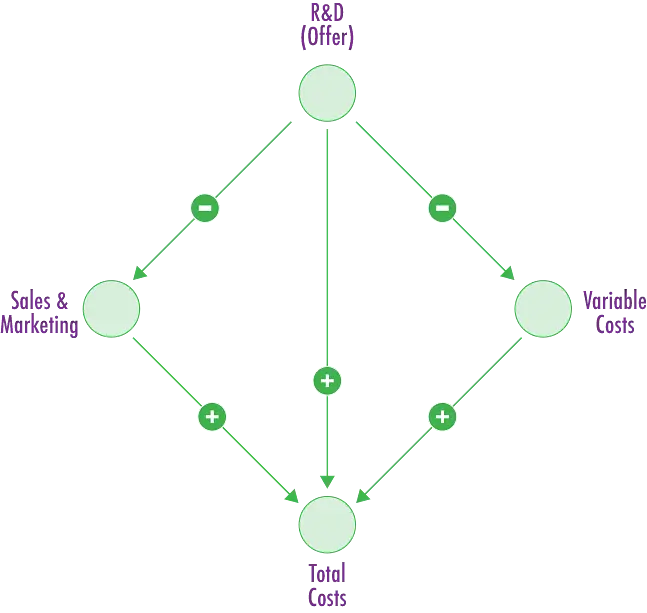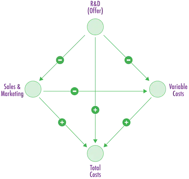 Your approach will vary based on which cost component has altered and how this influences the long-term sustainability of your enterprise. If R&D expenses have increased (potentially due to rising compensation for data scientists employed in R&D over recent years), you must assess your future investment needs and your attractiveness as an employer. Alternatively, if sales, marketing, or variable costs have risen, your initial consideration may be how to refine your offerings to better manage these expenses.