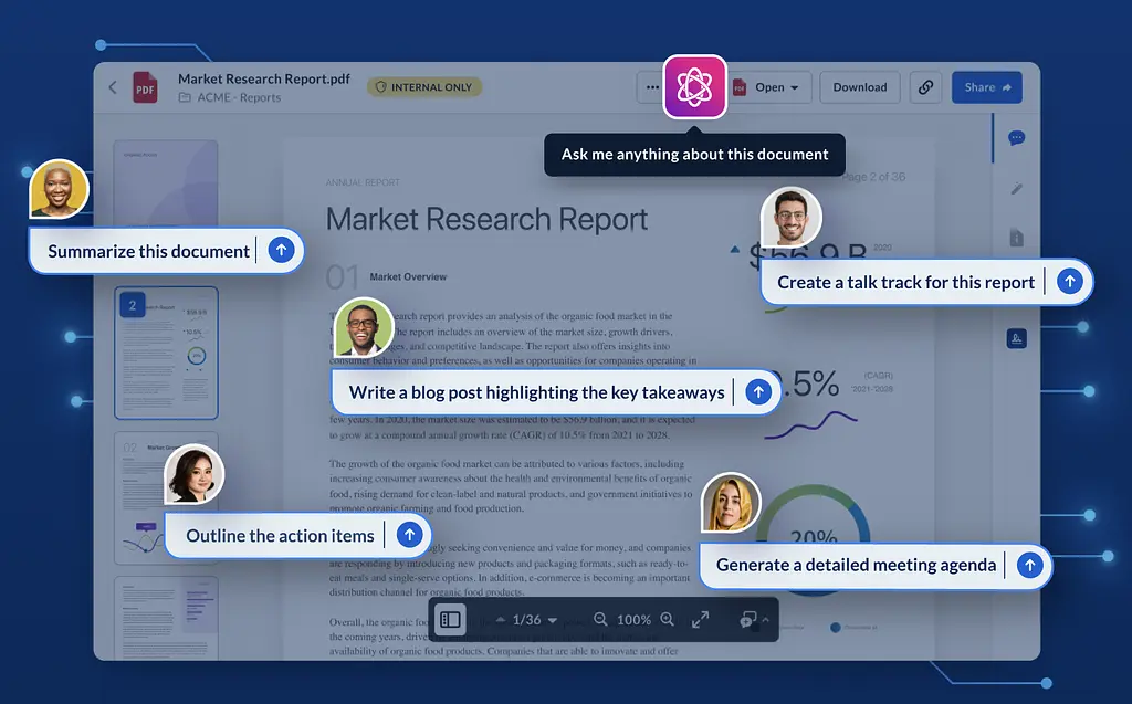 Box AI is positioned around ‘unlocking the value of enterprise content.’ Many companies store their content on Box or similar systems and this puts them in a good position to add that content into the language model while keeping the content proprietary. This is necessary for many companies. There are several architectures that support this (for one example see AI Pricing: Will the popularity of RAGs change how we price AI?. Here is how Box positions itself.