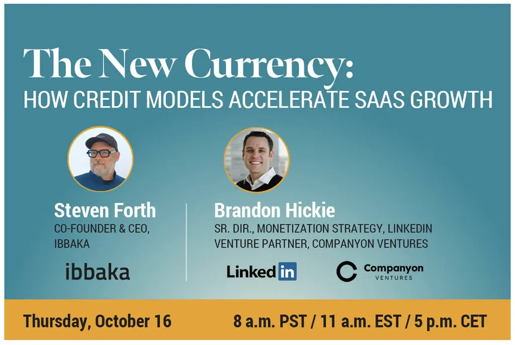On October 16 Ibbaka will host a webinar with one of the most knowledgeable people in the field, Brandon Hickie, Senior Director of Monetization at LinkedIn and a venture partner at Companyon Ventures. Brandon and Steven will cover key questions on the the why and how of credit-based pricing.