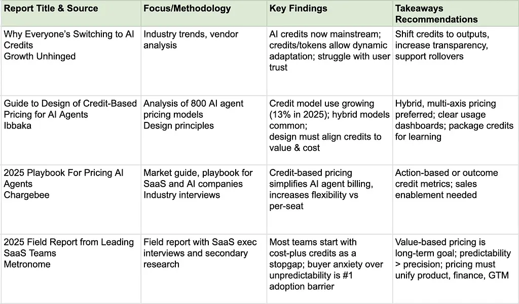 These real-world examples demonstrate both the potential and pitfalls of credit-based pricing, reinforcing the strategic guidance provided in the four analyzed reports.