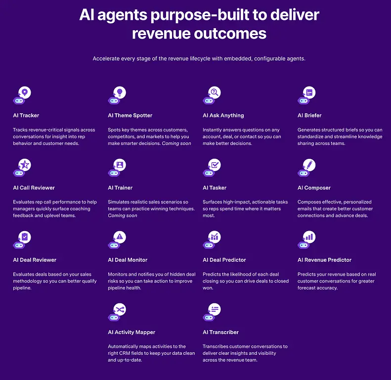 Gong is an example of an incumbent vendor that is layering agents on top. Take a look at their current collection of agents.