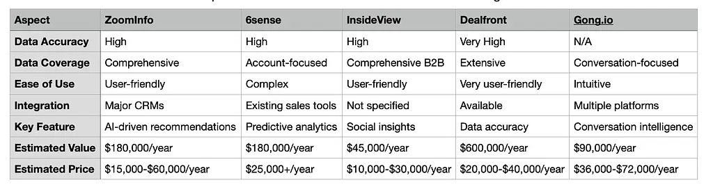 You are the new sales operations manager at a B2B software company. You are considering buying a sales intelligence tool. Your job is to identify and qualify potential solutions.